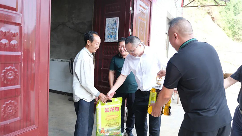 調(diào)研過程中,鄧敏董事長一行先后前往部分監(jiān)測戶家中走訪,與他們話家常、聊近況,詳細了解他們家里的田地、人口、收入以及享受政策幫扶情況,并叮囑駐村工作隊要時刻把群眾的冷暖放在心上,及時了解他們的生活狀況和所需所想,用心用情用力幫助群眾解決實際問題,并送上慰問物品。