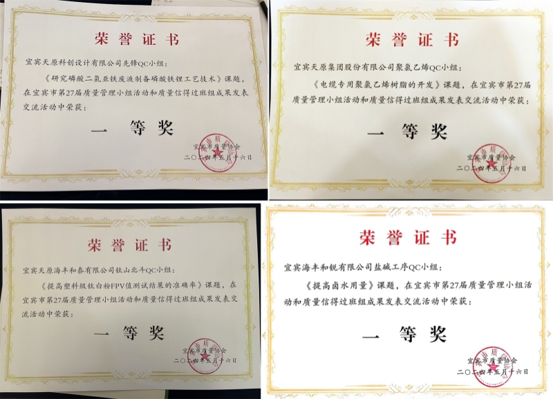 天原集團(tuán)獲宜賓市第27屆QC小組活動(dòng)和質(zhì)量信得過班組多類別獎(jiǎng)項(xiàng)