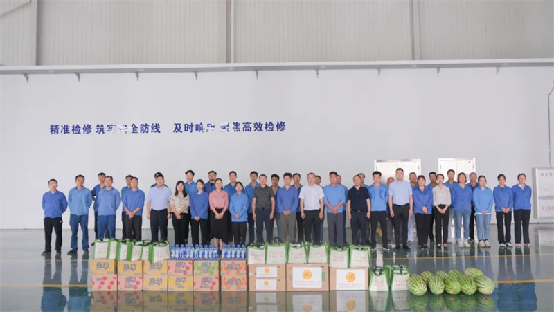 慰問現(xiàn)場,鄧書記一行還與現(xiàn)場管理人員進(jìn)行親切交談,詳細(xì)了解生產(chǎn)經(jīng)營、夏季安全生產(chǎn)和防暑降溫工作等情況,叮囑大家要密切關(guān)注員工動(dòng)態(tài),做好職工防暑降溫工作,多方面關(guān)心、關(guān)愛員工工作和生活,多舉措為員工營造良好的工作環(huán)境,確保夏季生產(chǎn)工作安全、平穩(wěn)、有序;要求持續(xù)推進(jìn)“天原工匠”職工職業(yè)技能競賽,加快培養(yǎng)選拔一批高技能人才,為公司生產(chǎn)經(jīng)營提供堅(jiān)實(shí)的人才支撐。